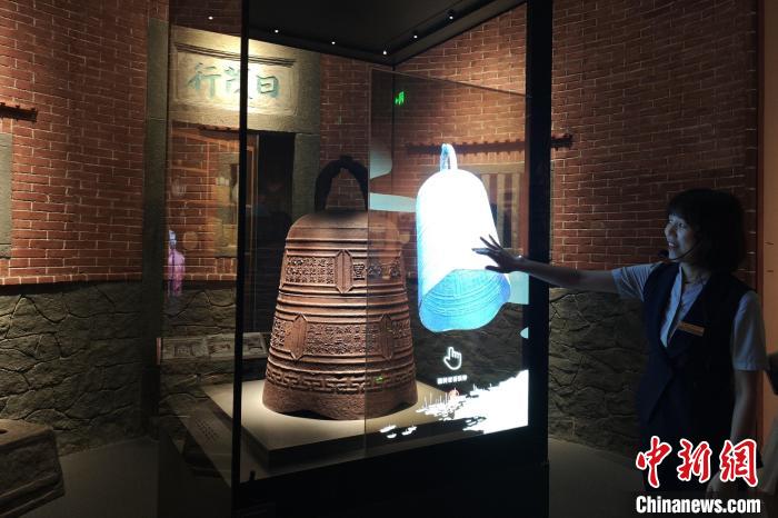 中國(guó)閩臺(tái)緣博物館里的眾多涉臺(tái)文物述說(shuō)著兩岸間難以割舍的情感紐帶。圖為清道光十七年鹿港郊公置鐵鐘。 吳冠標(biāo) 攝