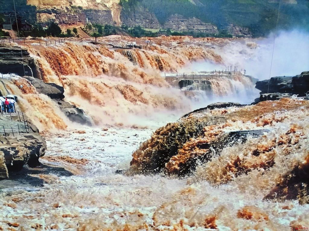 次日一大早,我獨(dú)自沿著黃河岸邊山西吉縣段向北行走,邊鍛煉身體邊觀瀑。黃河奔流至此,石壁峭立,河口收縮如壺口,故名。河面壓縮到二三十米,每秒一千立方米的河水,從二十多米高的陡崖上傾注而瀉,形成“千里黃河一壺收”的壯美景象。壺口瀑布是國家5A級(jí)風(fēng)景名勝區(qū),東瀕山西省吉縣壺口鎮(zhèn),西臨陜西省宜川縣壺口鎮(zhèn),為兩省共有的旅游景區(qū)。一瀑布連二省,同名同鎮(zhèn),秦晉之好,傳為佳話。