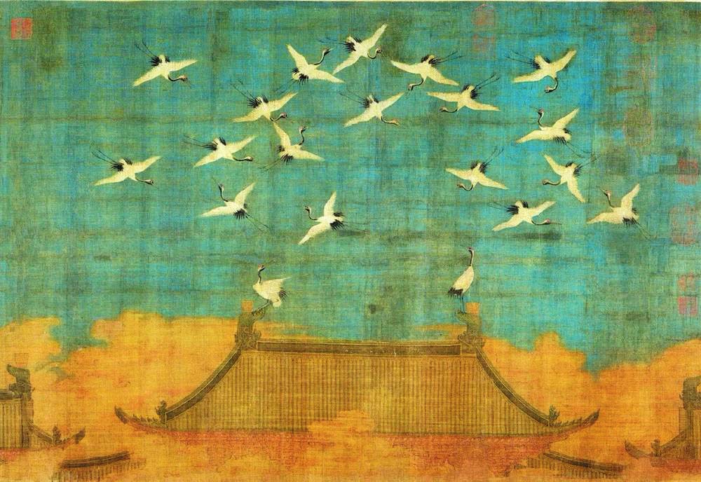 北宋政和二年(1112年)上元節(jié)次夕,天清氣朗,群鶴飛鳴,盤旋于宮殿上空,久久不肯離去。這讓宋徽宗趙佶產(chǎn)生了“仙鶴告瑞”的聯(lián)想,故欣然命筆,將目睹的這一幕繪于絹素之上,一幅千古名作《瑞鶴圖》就此誕生。在題畫詩(shī)中,趙佶以瘦金體記述了事件原委。他在詩(shī)中將群鶴與古籍中提及的祥鸞、赤雁相提并論,還特意強(qiáng)調(diào)了鶴與長(zhǎng)生不老的關(guān)聯(lián),將它們與蓬萊仙山聯(lián)系在一起,指出其壽命能夠長(zhǎng)達(dá)千年。雖然趙佶的祥瑞之愿難免落空,但鶴確實(shí)是一種長(zhǎng)壽的動(dòng)物。人工飼養(yǎng)的丹頂鶴能活到七十多歲,這相對(duì)于古人的平均壽命,實(shí)在是很可觀了。