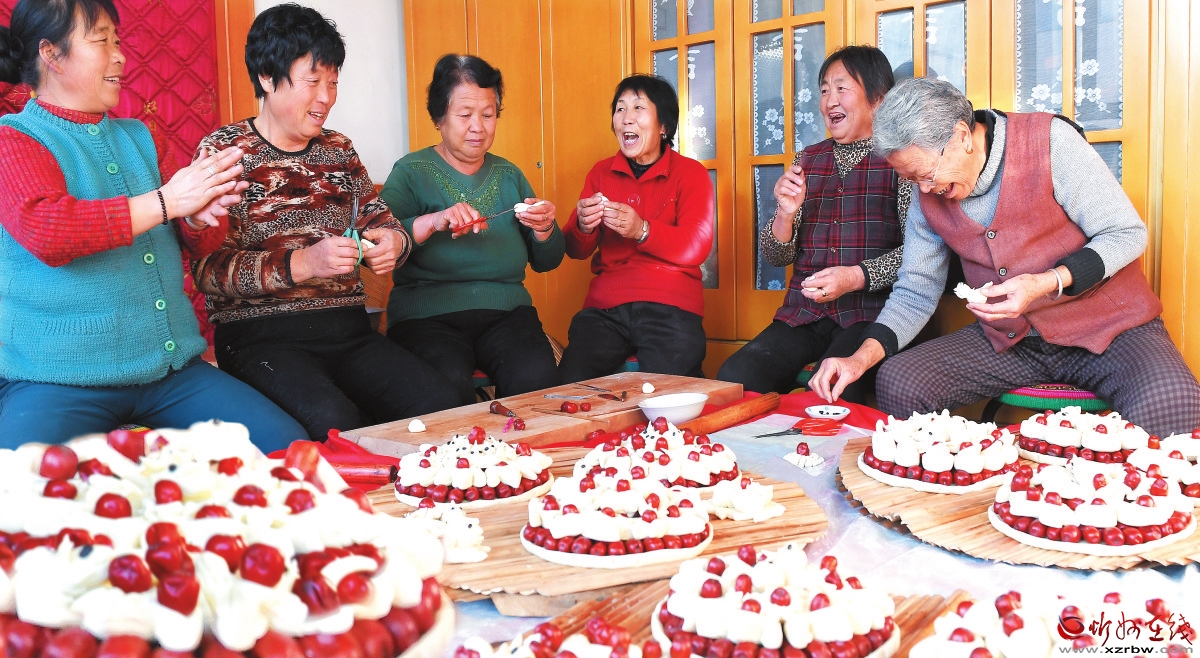 “臘八節(jié)”拉開了過年的序幕,臘月二十三,又稱“小年”。臨近年根,置辦年貨、洗洗涮涮,人們掃家除塵盡可能提早在臘月二十三前完成。為了飽享年節(jié)的輕松美好,在忻州民間有正月里不蒸灶的說法,人們要將年后一整個正月內(nèi)的所有主食集中在臘月加工制熟。過去,由于忻州小麥種植有限,唯獨過年才有口福享受幾頓白面食品,所以面食蒸灶是一件必不可少的事情。饃饃、花糕、棗山、錢龍,有女兒的還要有毛籃兒。上午蒸灶,下午搟豆面,這似乎也成為一種慣例。捏過花糕棗山的大面案依然還在炕邊擺著,把豆面和成硬硬的,搟得薄如紙張,折成幾折,切成一指寬左右的寬條,這是專為大年初一中午準備的“寬心面”。