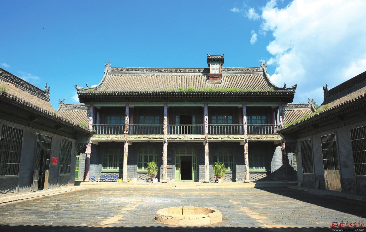 周玳官邸位于代縣上館鎮(zhèn)東南街村周家巷11號,建于1930年,坐北朝南,占地面積3996平方米。二進院落布局,中軸線上建有南房、過廳和正房(二層為藏書樓),兩側(cè)為門樓、東西配房及耳房,均為硬山頂磚木結(jié)構(gòu)。院西設花園,建六角亭1座。