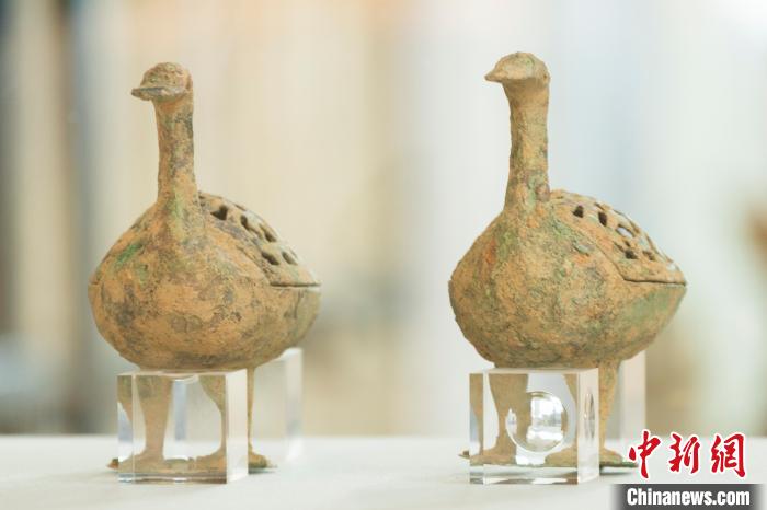 在這里,青銅香薰爐鏤空靈動的睡鴨造型,讓人不免想起李商隱《促漏》一詩中“舞鸞鏡匣收殘黛,睡鴨香爐換夕熏”的生活場景。
