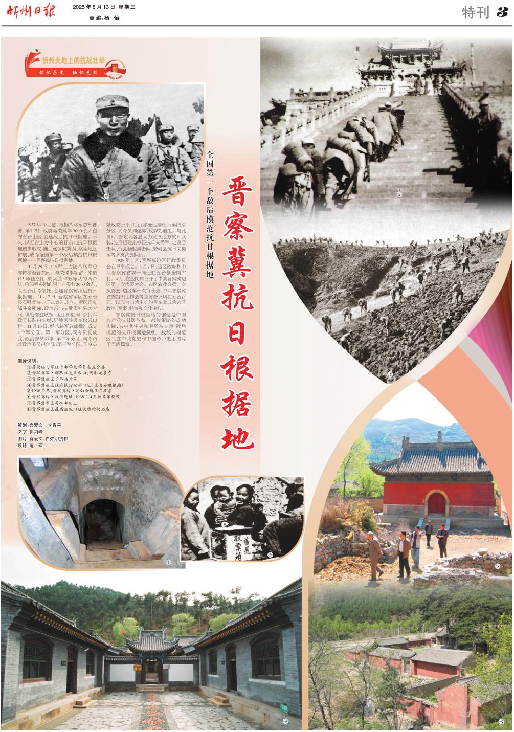 1937年10月底,根據(jù)八路軍總部部署,第115師政委聶榮臻率3000余人留守五臺山區(qū),創(chuàng)建敵后抗日根據(jù)地。不久,以五臺山為中心的晉東北抗日根據(jù)地初步形成,隨后逐步向冀西、察南地區(qū)擴展,成為全國第一個敵后模范抗日根據(jù)地——晉察冀抗日根據(jù)地。