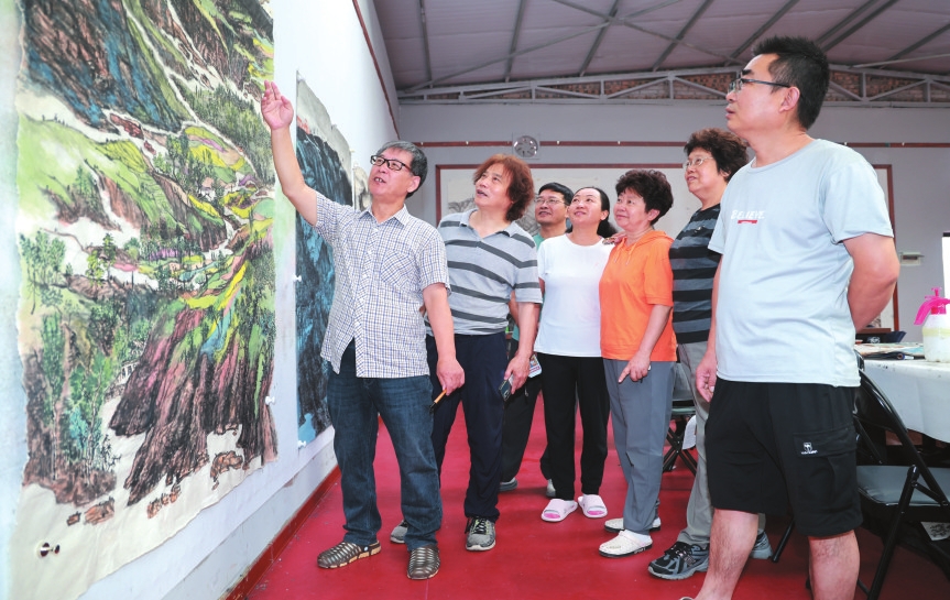 顧大明對河曲縣傾力開發(fā)翠峰山旅游資源、打造趙家溝寫生基地深表欣慰。今日翠峰山松柏蒼郁、群峰拱峙,登頂俯瞰,晉西北黃土高原地貌盡收眼底,雄渾氣象令人頓生“會當(dāng)凌絕頂”之慨。“這里不僅有厚重的黃土,更有勤勞勇敢、世代守護(hù)家園、將荒原變綠地的人們?!彼で闈娔?,將壯麗風(fēng)景與奮斗身影一并融入筆端。