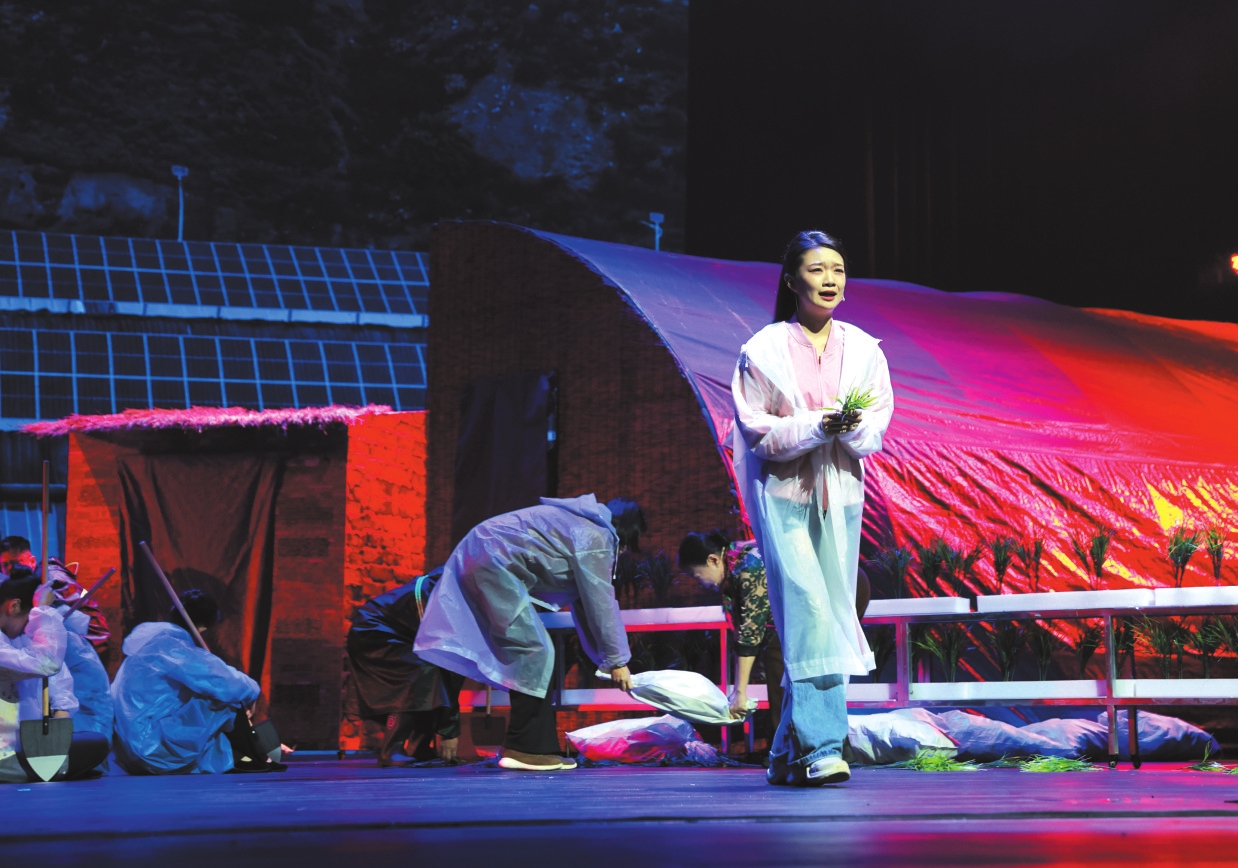 張存良 攝 作為主要人物,李小雨無疑成為話劇《三棵樹下》吸引觀眾的一個(gè)亮點(diǎn)。她的身世,她的理想,她的言行舉止——一句話,整個(gè)劇中她的個(gè)體命運(yùn)呈現(xiàn),都牢牢地抓住了觀眾,讓她成為劇中的靈魂人物。以至于在觀劇過程中,產(chǎn)生了李小雨一出現(xiàn),便會(huì)讓我眼前一亮的感覺。 站在新時(shí)期鄉(xiāng)村振興變革的當(dāng)口,李小雨的抉擇與行動(dòng),很顯然已經(jīng)不屬于她自身,而是與整個(gè)宋家溝鄉(xiāng)村命運(yùn)交織的一部分。更甚者,可以說,帶動(dòng)并影響了宋家溝村之外的無數(shù)村莊的變革。所以說,在大力發(fā)展鄉(xiāng)村振興的時(shí)代背景下,塑造“李小雨”這樣一個(gè)藝術(shù)形象,是具有時(shí)代意義的。塑造得成功與否,就更有探討的必要。 話劇這種藝術(shù)樣式,要抵達(dá)一個(gè)成熟的高度,不容易,需要十分強(qiáng)烈的藝術(shù)表現(xiàn)力和高度的矛盾沖突呈現(xiàn)。能不能讓觀眾看的時(shí)候動(dòng)容,看完還能留下印象,就有了施展拳腳的余地。把人物置于矛盾的漩渦,才能突出人物形象。這個(gè)適用于小說創(chuàng)作,同樣適用于劇本塑造。只有在矛盾的漩渦中,人物才能成長,觀眾才能買賬。這一點(diǎn),《三棵樹下》做得可圈可點(diǎn)。無論是一開始大雨對(duì)蔬菜大棚的極大毀壞,還是曹民財(cái)不折不撓的堅(jiān)持“退股”,甚至是城里男友的不理解、提出分手,都是加劇矛盾、讓農(nóng)學(xué)專業(yè)畢業(yè)的女大學(xué)生李小雨這個(gè)人物形象更加豐滿圓熟的重要手段。 放著好好的城里工作不干,非要跑回村里來帶領(lǐng)村民發(fā)展智慧大棚,李小雨圖的是啥?她自己說所學(xué)的知識(shí)在城里用不上,只有村里才能發(fā)揮作用。這話有道理,但不用說吊兒郎當(dāng)?shù)牟苊褙?cái)不理解,就是一般村民也不全理解。人往高處走,水往低處流嘛,違背常規(guī)的行為肯定會(huì)遭致猜疑以及污蔑之類,所以劇中曹民財(cái)?shù)摹巴斯伞憋L(fēng)波才會(huì)相應(yīng)地帶動(dòng)個(gè)別村民跟風(fēng),所以在遭到大雨毀損大棚、個(gè)別村民退股、曹民財(cái)又散布閑言碎語、男友又提出分手、恰巧又得知自己不是宋家溝村人而是孤兒的身世之后,李小雨才會(huì)痛苦地做出離開村子的選擇。如此,接下來李奶奶語重心長的心理疏導(dǎo)戲份才派上了用場(chǎng),李小雨外出取經(jīng)也才落到了實(shí)處……這樣的安排是合情合理的,是符合人物個(gè)體命運(yùn)發(fā)展軌跡的。 而角色的完美塑造,肯定不是僅僅停留在劇本腳本上。編劇的任務(wù)一旦完成,余下的就是演員以及導(dǎo)演和劇組所有人員的共同努力了,而且是更關(guān)鍵的因素。只有所有的力量聯(lián)合起來,才能讓劇中人物活起來,才能讓作品生發(fā)應(yīng)有的功用。 我們看到,話劇《三棵樹下》整個(gè)演出過程緊湊,過渡自然,其中不乏生動(dòng)活潑的人物形象,李小雨之外,曹民財(cái)作為一個(gè)襯托她的角色,也是別具匠心,他的游手好閑,他的酒醉傷人,他的無賴行徑,以及他后面的順應(yīng)時(shí)勢(shì)、搖身一變成為網(wǎng)紅達(dá)人,為村里農(nóng)特產(chǎn)品的營銷做出特殊貢獻(xiàn),都活靈活現(xiàn),成為整個(gè)劇中一個(gè)鮮明的點(diǎn)。 最值得稱道的就是趙家嫂這個(gè)小個(gè)子女人。雖然是個(gè)配角,但是道白動(dòng)作充滿煙火氣息,底氣十足,十分接地氣,是一個(gè)讓人過目不忘的角色。相比其他人物的形象多少有些扁平化處理,該角色的亮眼,就更值得研究。 整體來說,話劇《三棵樹下》讓人感受到了編劇、導(dǎo)演以及演出全體的努力。無論是李小雨,還是曹民財(cái),以及村民們,都被時(shí)代的洪流裹挾著,個(gè)體命運(yùn)的軌跡不可避免地在歷史的變革洪流中發(fā)生改變。劇目結(jié)尾,以“鄉(xiāng)村文化旅游季”為契機(jī),宋家溝村民們?cè)诶钚∮?、第一書記王家寶以及村委一干人帶領(lǐng)下,大力發(fā)展大棚經(jīng)濟(jì),農(nóng)文旅齊發(fā)展,走上了增收致富的康莊大道,村民們由“要我干”到“我要干”,觀念一旦轉(zhuǎn)變,一切就大變模樣。你只要擺正位置,發(fā)揮自己的優(yōu)勢(shì),就能在鄉(xiāng)村變革中展現(xiàn)嶄新的作為。這便是《三棵樹下》提供給我們的重要啟示。站在這個(gè)角度上說,話劇《三棵樹下》的成功也就是順理成章的事情了。其兼具思想深度、藝術(shù)張力和情感溫度,給予觀眾十分好的藝術(shù)享受。(趙志峰) (責(zé)任編輯:盧相?。?/span> |