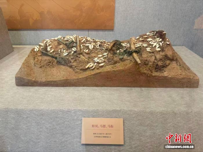 2月10日,“黃土尋駿——山西出土馬文物展”在山西考古博物館開(kāi)展。圖為出土于山西垣曲北白鵝墓地的一組馬鏢、馬銜、蚌貝。 中新社記者 楊靜 攝