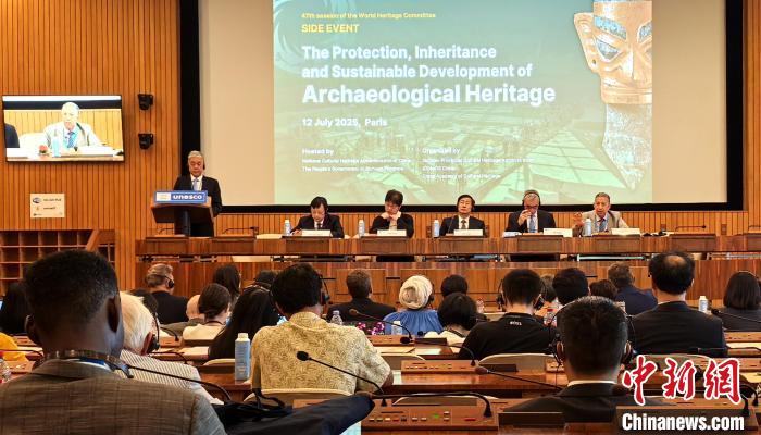 當(dāng)?shù)貢r間7月12日晚,第47屆世界遺產(chǎn)大會“考古遺產(chǎn)保護傳承與可持續(xù)發(fā)展”邊會在巴黎舉行。 主辦方供圖