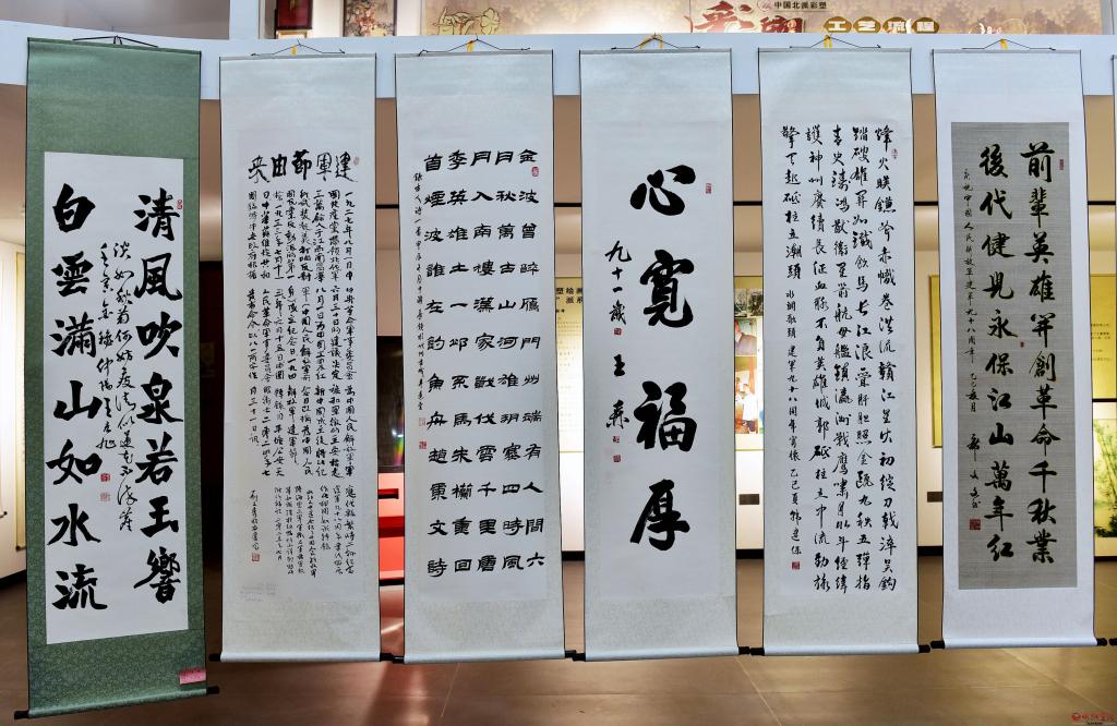 本次展覽精選65幅本土原創(chuàng)書畫作品,涵蓋書法、國畫等多種形式,創(chuàng)作者中既有深耕藝壇數(shù)十年的資深名家,也有鋒芒初露的青年新秀。書法作品或遒勁有力、或飄逸灑脫,筆墨警句直擊人心;繪畫作品以山水人物、梅蘭竹菊、青松翠柏等為意象,借物喻志彰顯高潔品格,更有紅色主題作品重現(xiàn)革命歲月,讓清廉文化與紅色基因相得益彰。