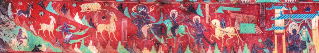 敦煌莫高窟第257窟的《鹿王本生圖》,是北魏時(shí)期的橫卷式壁畫(huà),也是同類(lèi)題材中保存最完整的連環(huán)畫(huà),講述一只美麗的九色鹿王,救了一個(gè)不慎落入水中快被淹死的人,然而卻被此人出賣(mài)的故事。1981年上海美術(shù)電影制片廠推出的經(jīng)典動(dòng)畫(huà)片《九色鹿》,就是以此壁畫(huà)為原型。