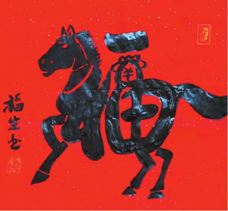 合體福字自古流傳,然民間之作多流于圖形化,失卻書法筆墨;文人之作多拘于字形拆解,難接地氣,難成氣象。王福生則在福字創(chuàng)作上實現(xiàn)了守正與超越:守書法之正,中鋒行筆,遵循法度,福字點畫線條皆具筆墨韻味,先立書法之本;創(chuàng)福藝之新,融民俗、親情、生肖于一體,打破雅俗界限,讓民間福文化與文人書法藝術(shù)完美融合,讓福字合體創(chuàng)作真正登上藝術(shù)殿堂,為當(dāng)代福字書法創(chuàng)新開辟了一條可鑒之路。