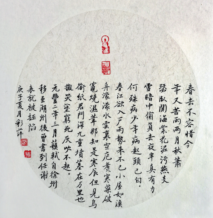 遺山詩社近期刊登的呂彩萍作品專輯,內(nèi)容上大致可分兩類:一是有關抗疫的時事情狀;二是吟詠梅蘭竹菊等花草植物以及四季更替、重要節(jié)日等,托風雅之詞,明自我心性。從藝術角度看,這些作品或沉思、或靈動,思緒開闊,韻致嫣然,詞畫有機相融,用典自如妥切,抒情性于辭采,詠雅志而不自矜。涵詠其間,若瓊花滿地,玉階生輝,天籟清風吹散密云,月下疏影暗吐清香。仔細品讀,可感受到作品呈現(xiàn)出的四種藝術之美,本文試作解讀。