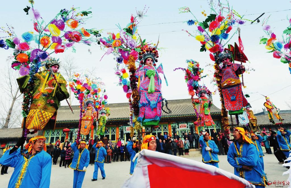 楊繼興 攝 “我們的撓閣,高高地?fù)显谒{(lán)天上,孩子們代表了我們的心愿和理想,音樂舞起來的時(shí)候,就放飛了人們的理想與希望?!?/p> 從代縣縣城驅(qū)車向東南方行駛25公里,在峨口鎮(zhèn)郝街村,我們一行見到了75歲的峨口撓閣國家級非物質(zhì)文化遺產(chǎn)傳承人郝來喜。坐在堂屋的土炕上,講起撓閣,郝來喜滔滔不絕,滿臉的心馳神往,古稀之年的他全然沒有一絲老態(tài)。 1948年,郝來喜出生于代縣峨口鎮(zhèn)郝街村,這里正是峨口撓閣的發(fā)祥地之一。從小,他就看著村里的撓閣表演長大。 “我小時(shí)候就盼著過年‘登閣’,但是那時(shí)候只有女孩兒可以登撓閣,所以父親就把我扮成女妝反串上場?!?/p> “登閣”,意即登高望遠(yuǎn),可以祈求吉星高照,四季平安,能夠“登閣”是每個(gè)峨口小孩最盼望的事。 “第一次‘登閣’,在寒風(fēng)里搖搖晃晃,雖然又冷又怕,可一熱鬧起來,就什么都忘了?!睆?歲“登閣”,22歲撓閣,再到2017年成為國家級非遺傳承人,郝來喜已經(jīng)與撓閣打了將近70年交道,曾被他撓過的小孩現(xiàn)在最大的也四五十歲了。 提起當(dāng)年盛況,郝來喜依舊難掩喜悅,“峨口村村都可以組織起隊(duì)伍,少則十二架,多則二十四架,也叫全架。每年正月十三到十六,三個(gè)村一共六十多架撓閣全體出動(dòng)?!焙聛硐舱f,在從前,撓閣是一項(xiàng)全民參與的文藝活動(dòng),家家戶戶積極性都很高。 “從正月初十開始,女人們就動(dòng)手扎花裝飾撓閣架,準(zhǔn)備表演服裝,到表演的日子,更是全村出動(dòng),化妝的、表演的、幫忙的,一村人熱熱鬧鬧、忙忙碌碌,早上九點(diǎn)多從峨口出發(fā),一行人浩浩蕩蕩到代縣縣城,熱鬧的音樂聲能轟動(dòng)整個(gè)古城?!?在郝來喜眉飛色舞的講述中,撓閣表演的盛景仿佛就在眼前。 “我們都不談報(bào)酬,小孩們給幾顆糖,大人們散幾支煙,村民們各家出一點(diǎn)干糧,每一個(gè)人都愿意在表演時(shí)出最大的力氣,這是我們心里的一場盛會(huì)?!?郝來喜說,每一個(gè)參與的人,都是出于對撓閣發(fā)自內(nèi)心的熱愛。 曾在峨口工作生活多年的工商銀行代縣支行職工高軍萍是峨口撓閣的忠實(shí)觀眾,在她的記憶中,撓閣是元宵節(jié)“鬧紅火”的重頭戲。從清早樂隊(duì)的嗩吶聲響起開始,各個(gè)村的撓閣高手就齊聚廣場,各個(gè)隊(duì)伍間既有合作,又有比拼,熱熱鬧鬧的表演成為代縣街頭的一大風(fēng)景,“用萬人空巷來形容也毫不夸張?!备哕娖颊f。 “撓閣”作為一種民間藝術(shù),蘊(yùn)含著豐富的文化內(nèi)涵。在晉北方言中,撓閣是指抬起或舉高的“閣樓”(引申為仙閣和女孩兒),是一種撓起孩童進(jìn)行表演的藝術(shù)形式。于2008年被列入第二批國家級非物質(zhì)文化遺產(chǎn)名錄。 “在文化界,峨口撓閣被譽(yù)為無言的戲劇,空中的舞蹈,流動(dòng)的雜技,鮮活的雕塑。撓閣是一門融合了傳統(tǒng)文化精粹的綜合性藝術(shù),孩子們的扮相,是楊家將、紅樓夢、白蛇傳里的人物,不必開口,就可以上演一出好戲。鼓點(diǎn)一起,大人們跳起舞步,孩子們在空中或翩翩起舞,或翻著跟頭,代縣千百年來的風(fēng)土文化凝聚在其中?!睂Χ肟趽祥w傾注了大量心血的代縣人民政府副縣長陳文秀總結(jié)道。 傳統(tǒng)文化正以特有的方式浸潤著這座僅有22萬人口的晉北小城,滲透到人們的生活中。“這里的農(nóng)民,不僅是鋤禾日當(dāng)午,農(nóng)閑的時(shí)候,他們放下鋤頭,音樂一起,撓起架子就可以扭上一曲。”在陳文秀眼里,普通農(nóng)民遇上藝術(shù),就不再平凡,每一個(gè)農(nóng)民都是藝術(shù)家。 “峨口撓閣是一項(xiàng)歷史悠久,有著頑強(qiáng)生命力的民間藝術(shù)。在最傳統(tǒng)的撓閣中,農(nóng)民們會(huì)把自給自足的辣椒、玉米裝點(diǎn)在抬架上,以此來慶祝豐收,并祈禱來年風(fēng)調(diào)雨順。后來出現(xiàn)了人物形象的塑造,逐漸演化成我們今天所見的樣子?!贝h當(dāng)?shù)匚幕瘜W(xué)者、山西省作家協(xié)會(huì)會(huì)員李培根說,峨口撓閣歷史悠久,源遠(yuǎn)流長。 李培根介紹,峨口撓閣經(jīng)歷了原始社會(huì)有巢氏至秦代模仿樹原生態(tài)的孕育期,漢代至南北朝無伴奏表演到器樂和鳴的轉(zhuǎn)型期,隋唐至民國的表演、服飾、伴奏相配套的成熟期,新中國成立至上世紀(jì)六七十年代初期的興衰更迭的曲折發(fā)展期,以及實(shí)施“民族傳統(tǒng)文化保護(hù)”工程后的弘揚(yáng)、振興期,迄今已有1700多年歷史。當(dāng)?shù)爻鐾恋哪媳背召冈煨鸵彩嵌肟趽祥w在歷史長河中的記錄與體現(xiàn)。 粗獷的舞步,質(zhì)樸的音樂,經(jīng)過1700多年歲月洗禮的撓閣,更像是穿行在漫長歷史長河里的時(shí)光剪影。背縛撓閣的壯漢,在山西“八大套”器樂的伴奏下,腳下用力,氣沉丹田,以腰為軸,扭動(dòng)大胯,把握重心,張弛有度地扭動(dòng),舞步沉穩(wěn)輕緩,依照踩“葫蘆”、對扭、走“8”字、轉(zhuǎn)圈、直行、穿插等步法不時(shí)變換隊(duì)形。 郝來喜說,與太原的徐溝背棍不同,峨口撓閣的鐵架為活架,幾個(gè)連接處均可前后左右任意活動(dòng),因而表現(xiàn)更為活潑靈動(dòng)。撓閣架上的小孩則按下面壯漢給的力度,甩動(dòng)水袖,或上下,或左右,或輕柔,或奔放,個(gè)個(gè)顧盼生輝,娉婷婀娜。在女孩們中間,還常