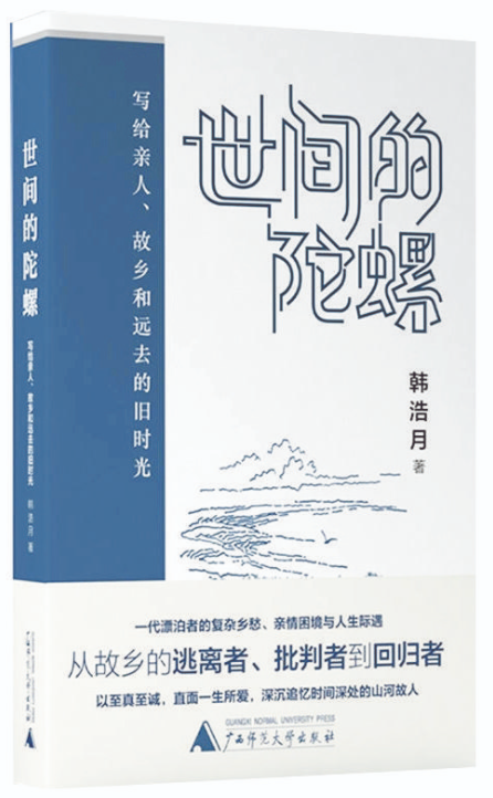 人不管走得多遠,最終都要和故鄉(xiāng)的人、故鄉(xiāng)的山河、故鄉(xiāng)的那段歲月握手言和。在《世間的陀螺》這本散文集里,韓浩月把故人、故鄉(xiāng)、故事一一請進書中、銘刻心間,讓其成為自己生命中的光亮,照耀未來的道路。如他自己所說的,“從一個出走者和背叛者變成一個回歸者”,回歸并不單指肉體層面,把故鄉(xiāng)一直裝在心里的人便是永恒的回歸者。無論親人是生是死,無論故鄉(xiāng)是新是舊,一直對其不離不棄的人,才是故鄉(xiāng)大地懷抱里永遠長不大的孩子——想哭就哭,想笑就笑,想跳就跳,想回來就回來。(張家鴻)