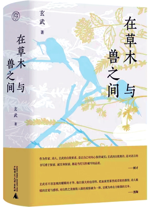 玄武的散文集《在草木與獸之間》由廣西師范大學(xué)出版社于2024年7月出版,全書共計(jì)24萬字,由七輯構(gòu)成,分別是:“第一輯/那些凝視我的野獸”,介紹了作者在山間的經(jīng)歷;“第二輯/庚子年的春天深處”,介紹了春天最讓作者有所感動(dòng)的花卉;“第三輯/每到天地之間,我便魂飛魄散”,介紹了作者自身在天地之間的微妙感受;“第四輯/不滅對(duì)善良、溫暖和光的信任”,介紹了給作者以溫暖觸動(dòng)的那些人;“第五輯/鳥兒銜走我們的靈魂”,描寫了小動(dòng)物和鳥兒在作者心中的悸動(dòng);“第六輯/在故鄉(xiāng)的異鄉(xiāng)人”,描寫了在故鄉(xiāng)的異鄉(xiāng)人;“第七輯/遠(yuǎn)去,或者歸來”,描寫了遠(yuǎn)去或者歸來的體驗(yàn)和感受。