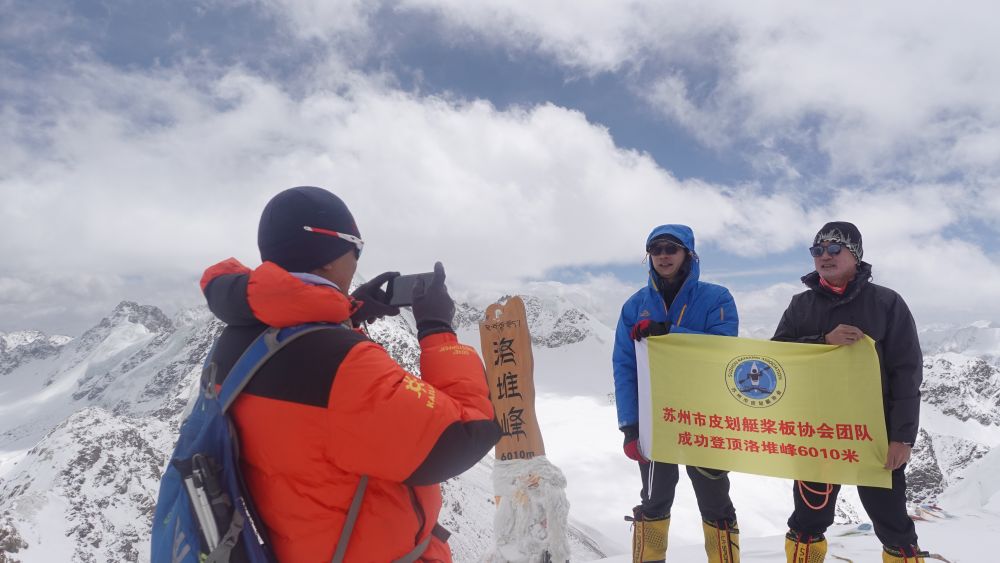 5月3日,登山愛好者在海拔6010米的洛堆峰峰頂拍照留念。新華社記者黃耀漫攝