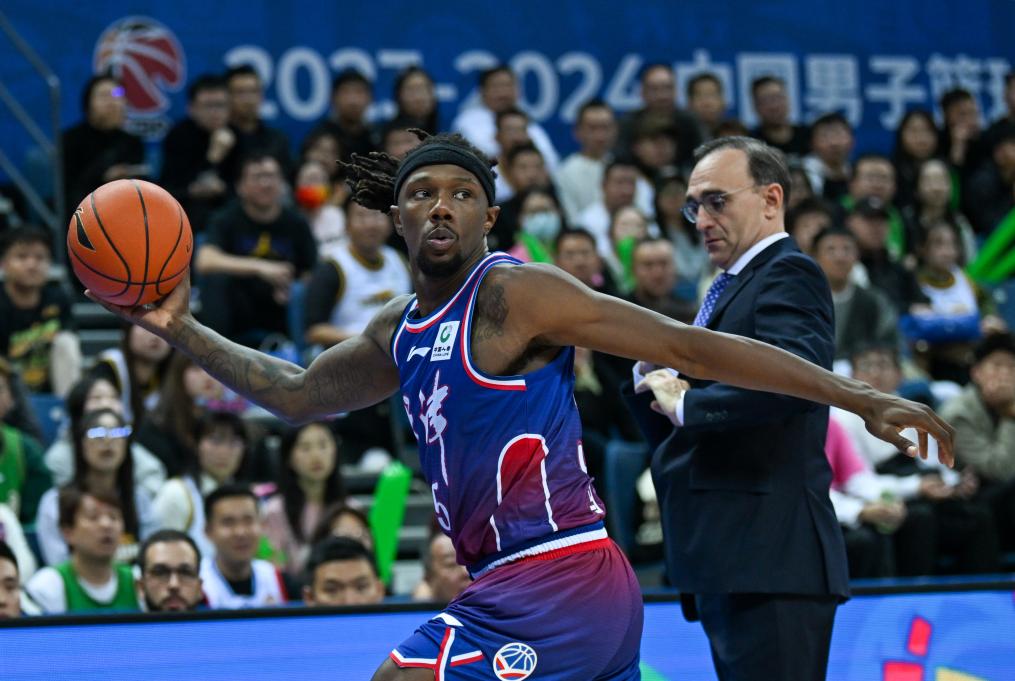 11月6日,天津隊球員馬克(左)在比賽中。新華社記者 孫凡越 攝