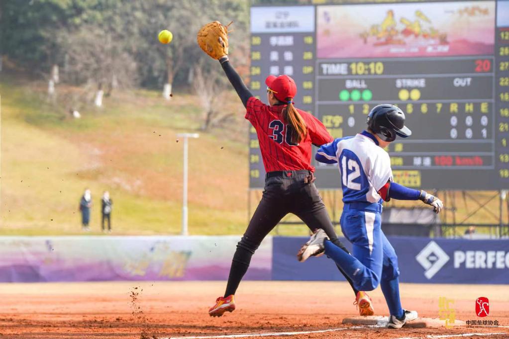 本賽季此前兩度交手,滬蘇兩隊(duì)各勝一場。29日晚,坐鎮(zhèn)主場的南工大玉麒麟隊(duì)發(fā)揮神勇,在第四局連續(xù)通過安打得分,將比分定格為11:1。根據(jù)規(guī)則,在第四局領(lǐng)先10分即可結(jié)束比賽,南工大玉麒麟隊(duì)拿下本場比賽后,積分追平上海隊(duì),勝負(fù)關(guān)系占優(yōu)的她們最終反超上海隊(duì),獲得總決賽資格。
