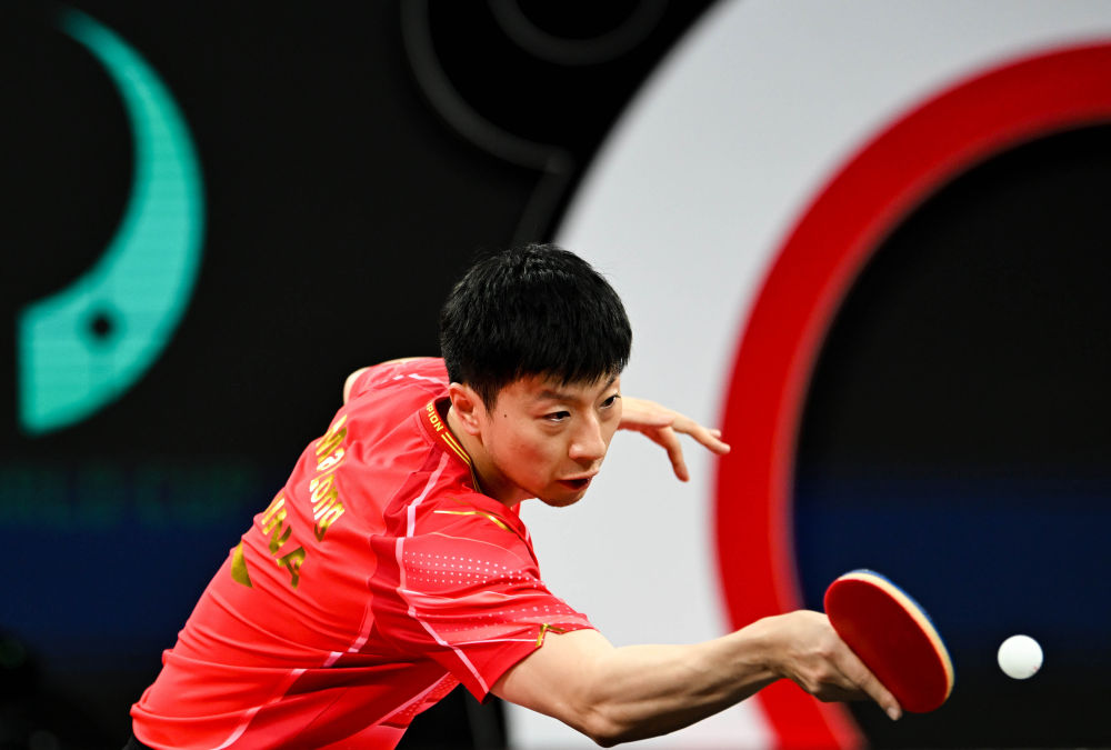 12月7日,中國(guó)隊(duì)選手馬龍?jiān)谀袉伪荣愔小P氯A社記者 王曦 攝
