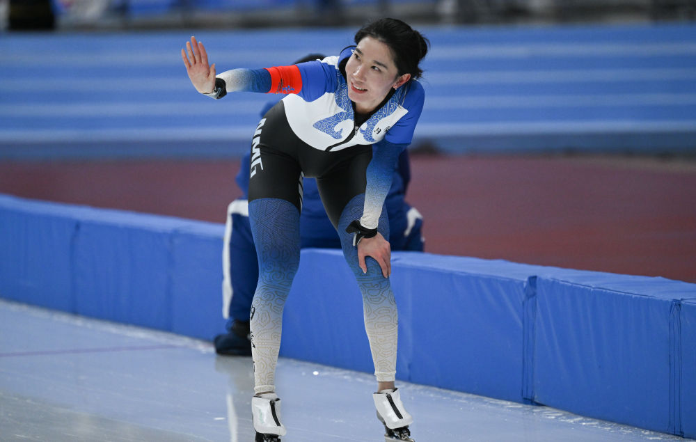 韓梅在“十四冬”上共獲得三金一銀。談及最難忘的一枚獎牌,她挑了1000米的銀牌?!白约阂矝]想到前600米的水平會很高,(最后一圈)想要急于完成一些(動作)的同時,一些細(xì)節(jié)還是不夠充分?!彼χf,不算遺憾吧,這七八年其實并沒有重點練過1000米,但確實運氣差了一點。