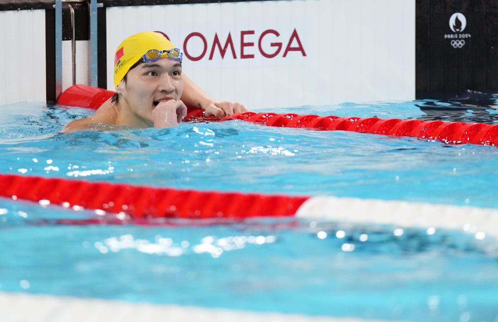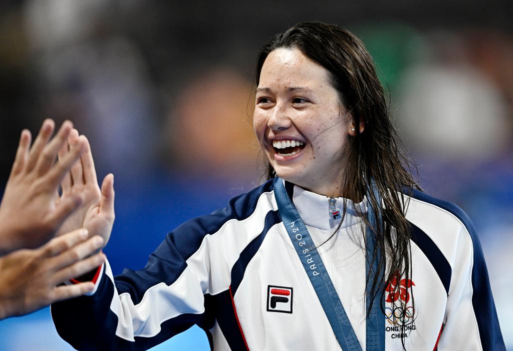 7月29日,季軍中國香港選手何詩蓓在頒獎(jiǎng)儀式后。當(dāng)日,巴黎奧運(yùn)會(huì)游泳女子200米自由泳決賽在拉德芳斯體育館舉行。新華社記者 王鵬 攝