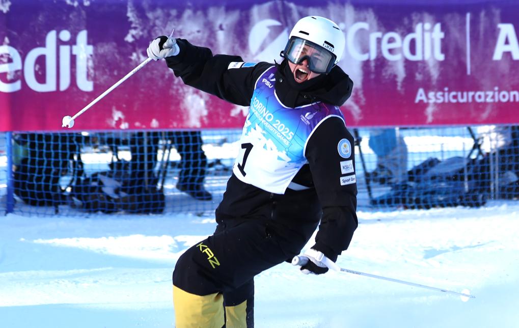 1月14日,哈薩克斯坦選手阿納斯塔西婭·戈羅德科抵達(dá)終點(diǎn)后慶祝。當(dāng)日,在意大利舉行的2025年都靈大冬會(huì)自由式滑雪雪上技巧女子組決賽中,哈薩克斯坦選手阿納斯塔西婭·戈羅德科奪得冠軍,日本選手中尾春香和德國(guó)選手威斯分獲二、三名。新華社記者 張晨 攝
