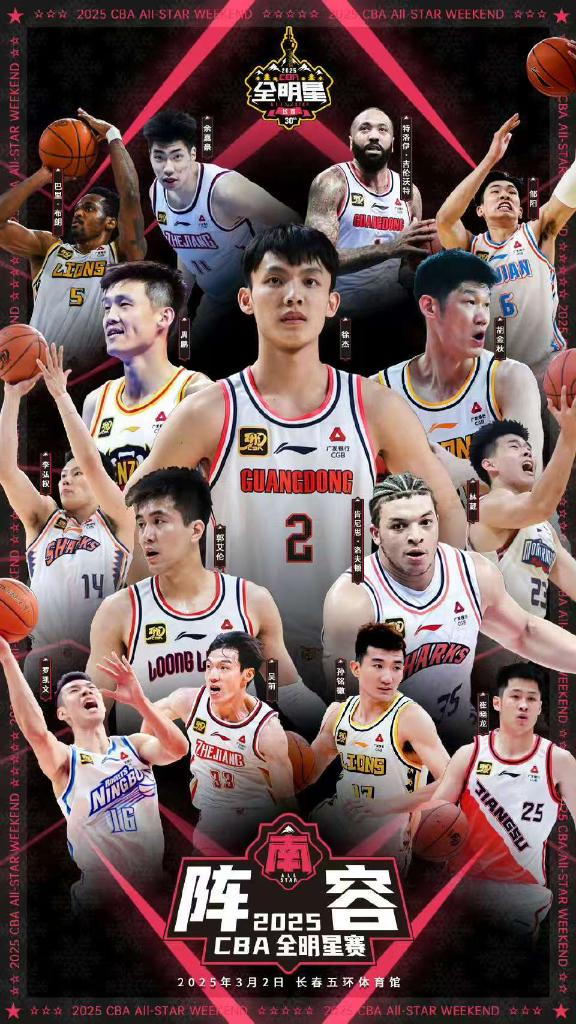 在最新公布的陣容名單中,南、北區(qū)明星隊陣容備受關(guān)注。其中北區(qū)明星隊首發(fā)陣容為周琦、曾凡博(北京)、楊瀚森(青島)、趙睿(新疆)、趙繼偉(遼寧)。替補球員包括張寧、哈米杜·迪亞洛(山西)、高詩巖(山東)、王睿澤(青島)、韓德君(遼寧)、鄒雨宸(北控)、姜偉澤、多米尼克·瓊斯(吉林)、林庭謙(天津)、艾德蒙·薩姆納(四川)。
