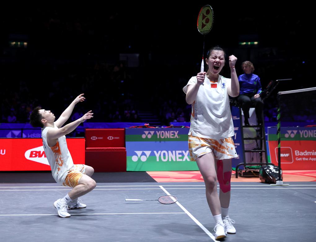 隨著郭新娃/陳芳卉、馮彥哲/魏雅欣在15日的半決賽中戰(zhàn)勝各自對(duì)手,中國(guó)隊(duì)已提前鎖定混雙冠軍。16日的決賽中,7號(hào)種子郭新娃/陳芳卉以21:16先下一城,但5號(hào)種子馮彥哲/魏雅欣隨后以21:10還以顏色。決勝局中,郭新娃/陳芳卉在最多領(lǐng)先5分的情況下被對(duì)手追平,并且讓對(duì)方率先兩度獲得賽點(diǎn),但他們頂住壓力,最終以23:21勝出,第一次捧得全英賽桂冠。