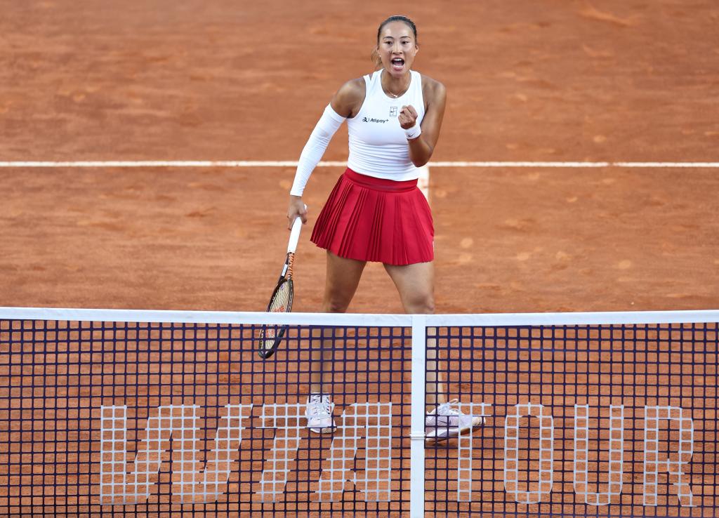 本場(chǎng)比賽,鄭欽文多次通過(guò)放小球得分?!拔铱吹綄?duì)手一直往后退,所以我希望打亂一下她的節(jié)奏。我也看到對(duì)手的腳步不是很快,我覺(jué)得在紅土場(chǎng)上,放小球是一個(gè)比較有力的武器?!?/p>
