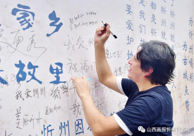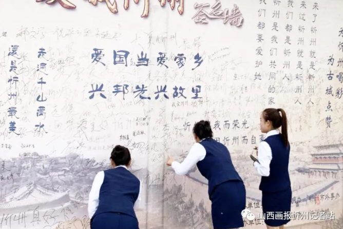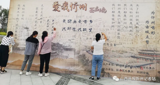“走遍千山萬水,還是忻州最美”“來了忻州就是忻州人,來過忻州就是忻州人”“愛國當(dāng)愛家鄉(xiāng) 興邦先興故里”……墻上的一句句充滿情感、生動質(zhì)樸的語言,寫滿了對祖國、對家鄉(xiāng)的濃濃熱愛,引起了過往游客路人的深深共鳴。游人們有的在這些文字旁簽名,有的合影留念,有的文思泉涌寫下一條條深情寄語,盡情表達(dá)著對忻州發(fā)展的美好祝福和共建全國文明城市的堅(jiān)定信心。