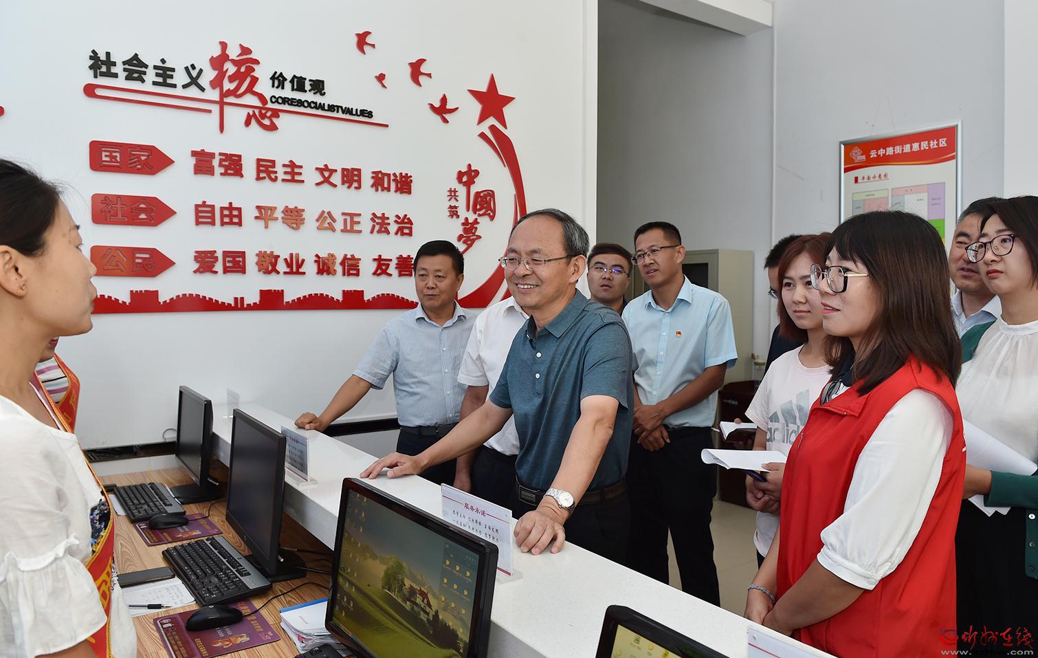 惠民社區(qū)創(chuàng)文氣氛濃厚,墻上張貼著創(chuàng)文展板,隨處可見溫馨的提示,志愿者隨時(shí)提供服務(wù)。鄭連生檢查了社區(qū)綜合文化服務(wù)中心,向工作人員詢問服務(wù)中心的功能和作用,并查看了社區(qū)創(chuàng)文資料。他強(qiáng)調(diào),要切實(shí)發(fā)揮好綜合文化服務(wù)中心在文化宣傳、黨員教育、科普教育、普法教育、市民教育、家長學(xué)校、道德講堂等方面的作用,形成制度,制定活動計(jì)劃,按期開展活動,促進(jìn)群眾素能的不斷提升。