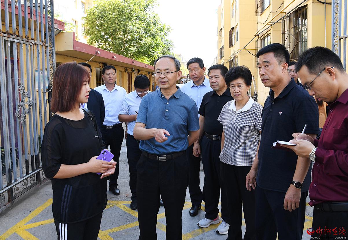 師院西路既屬于背街小巷,又是老舊小區(qū)集中區(qū)域。鄭連生一行在督查師院西路環(huán)境衛(wèi)生、車輛停放秩序等情況的同時,還隨機進入小區(qū)檢查文明城市創(chuàng)建工作落實情況。他要求,要以創(chuàng)建全國文明城市為契機,進一步查漏補缺,推進背街小巷、老舊小區(qū)的環(huán)境整治,加大設施配置、標線施劃、衛(wèi)生清潔等工作的力度,做到所有車輛進庫進位、環(huán)境整潔、秩序井然,不斷提升居民生活質量。