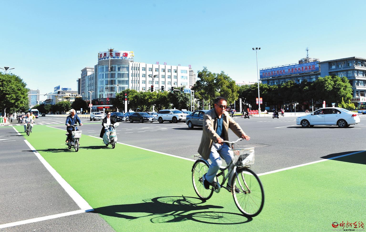9月3日,市民在忻州城區(qū)七一路與長(zhǎng)征街交叉路口的自行車專用道上騎行。日前,忻州路面上出現(xiàn)人車分離“斑馬線”,行人走斑馬線、騎行則走專用自行車道,很好地實(shí)現(xiàn)了人和非機(jī)動(dòng)車分流通過(guò),為創(chuàng)建文明城市增色。 宮清華 攝 (責(zé)任編輯:盧相?。?/span> |