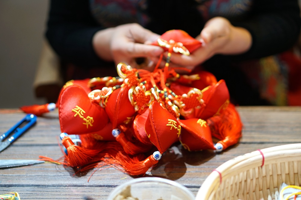 “這叫‘金絲寶葫蘆’,寓意招財(cái)進(jìn)寶。這個(gè)小蘋(píng)果,掛在車(chē)上寓意平平安安……”