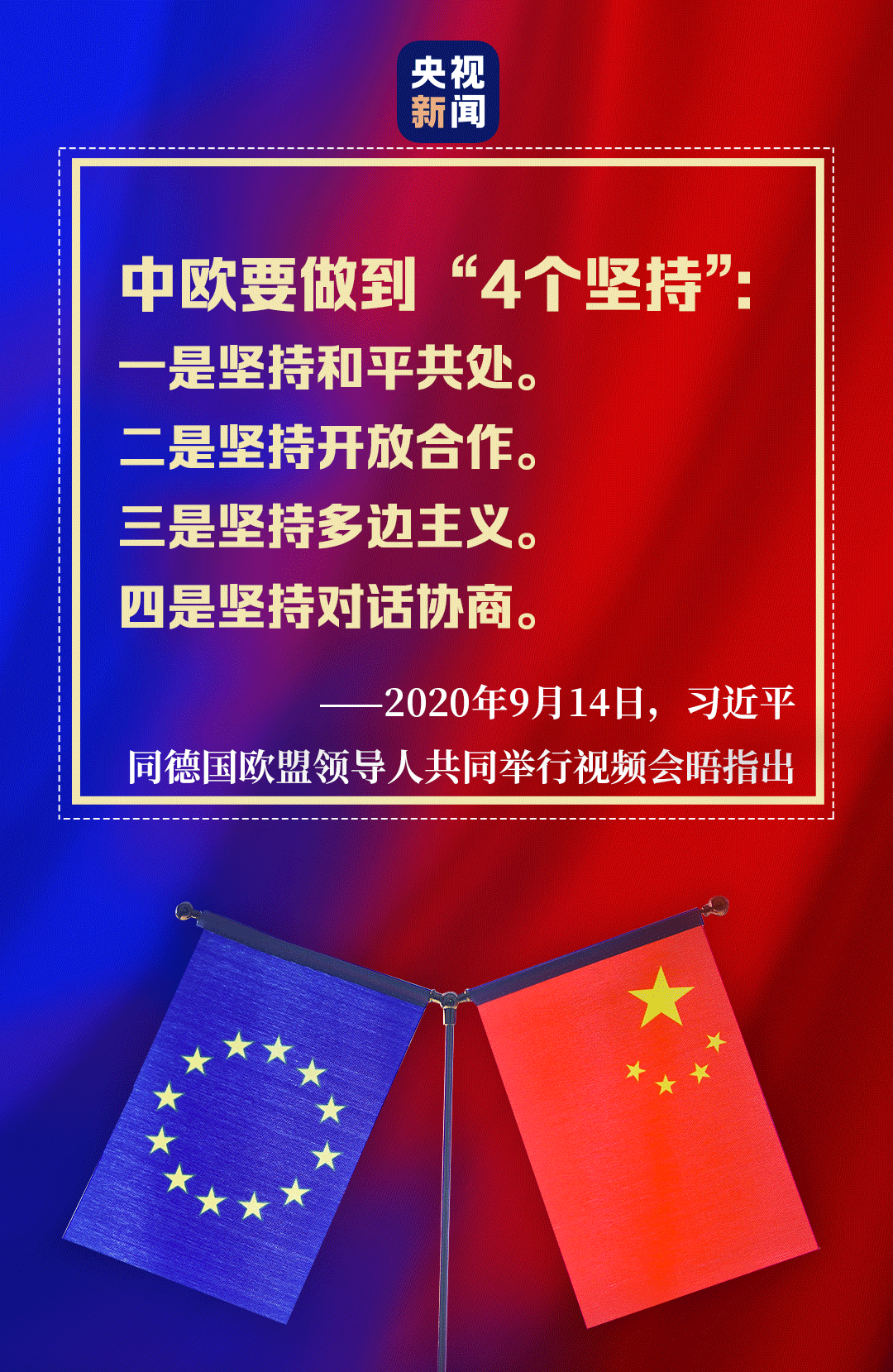 “后疫情時代”中歐關(guān)系如何發(fā)展,習(xí)近平主席的“4個堅持”向世界表明了中國立場、中國態(tài)度。