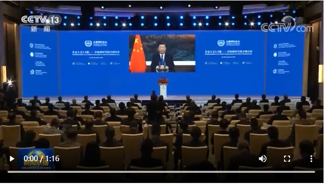12月5日,國家主席習近平在北京向“2021從都國際論壇”開幕式發(fā)表視頻致辭。新華社記者 黃敬文攝