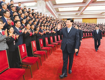 下午3時(shí)30分,習(xí)近平等來到人民大會堂北大廳,全場響起熱烈掌聲。習(xí)近平等向代表們揮手致意,同大家親切交流并合影留念。