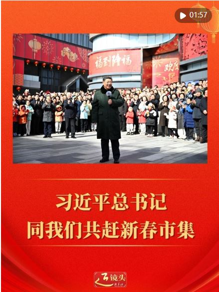 習(xí)近平總書記同人民群眾共趕市集、共迎新春,是年節(jié)里最溫暖的圖景??倳涀叩桨傩罩虚g,送上真摯的新春祝福:“在農(nóng)歷馬年龍馬精神、身體健康、事業(yè)有成、闔家幸福!”