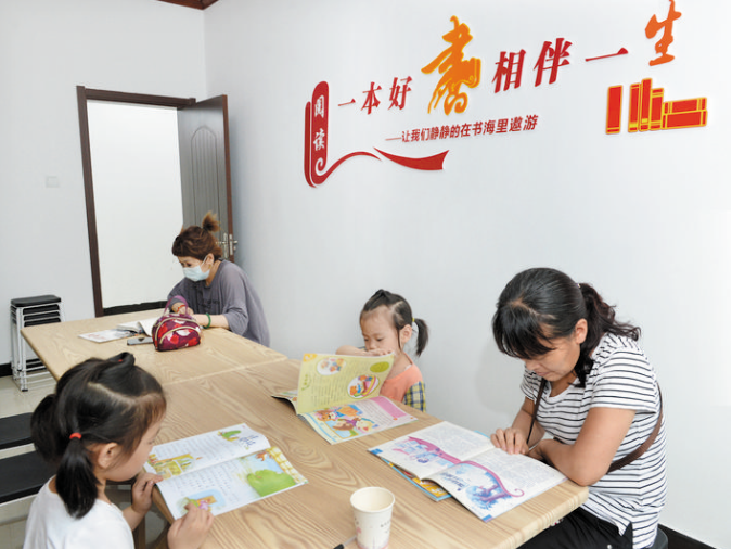 我市在創(chuàng)建全國文明城市工作中,城區(qū)辦事處綜合文化站標(biāo)準(zhǔn)化規(guī)范化工作得到進(jìn)一步提升。圖為社區(qū)群眾正在新建路辦事處黨群服務(wù)中心閱覽室進(jìn)行親子閱讀。本報(bào)記者 宮愛文 攝