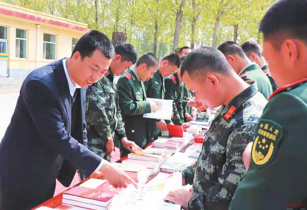 為豐富駐忻武警官兵的文化生活,近日,市新華書店開展了“送書進(jìn)軍營”活動,給武警官兵帶去了豐富的精神食糧。(張存良 攝)