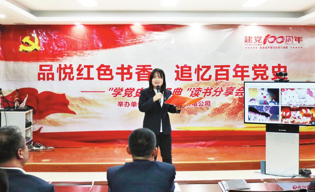 為慶祝中國共產(chǎn)黨成立100周年,推進黨史學(xué)習(xí)教育走深走實,重溫黨史,感悟初心使命,傳承紅色基因,國網(wǎng)寧武縣供電公司舉辦了“品悅紅色書香 追憶百年黨史”讀書分享會。圖為活動現(xiàn)場。 (張正雨 攝)