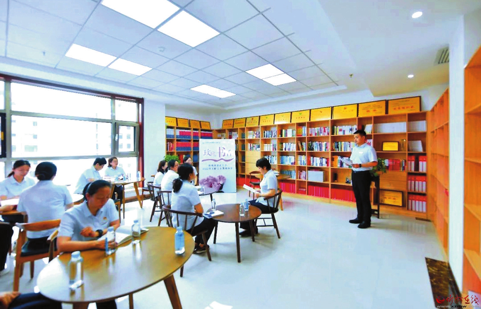近日,市聯(lián)社工會舉辦2022年“玫瑰書香”女職工主題閱讀會,為愛好讀書的女職工搭建文學交流平臺。在活動現(xiàn)場,女職工代表飽含深情地誦讀了《習近平的七年知青歲月》《魯迅經(jīng)典全集》《之江新語》《蒼涼深處等春來》等書中的文章,通過情感和聲音詮釋文字背后的精神力量,展示新時代女職工風采。(任飛鴻 攝)