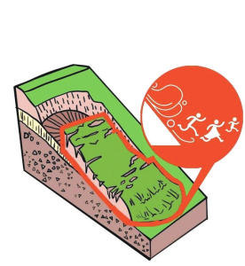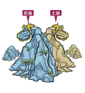 2.遭遇高速滑坡時(shí),如滑坡呈整體滑動(dòng)時(shí),迅速抱住身邊的樹木等固體物體,也可以躲避在結(jié)實(shí)的障礙物下。不能將避災(zāi)場(chǎng)地選擇在滑坡的上坡或下坡。