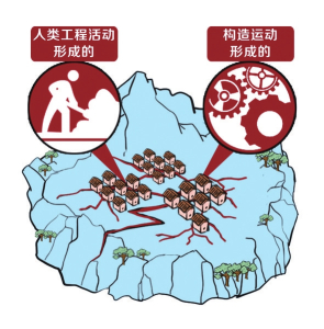 地裂縫的成因有兩大類,第一種是內(nèi)動(dòng)力,由構(gòu)造運(yùn)動(dòng)形成的,比如地震等自然因素;另一種是外動(dòng)力,由人類工程活動(dòng)形成的,比如松散土體潛蝕、膨脹土脹縮等形成地裂縫。還有一種是人類過量抽汲承壓水導(dǎo)致的地裂縫。