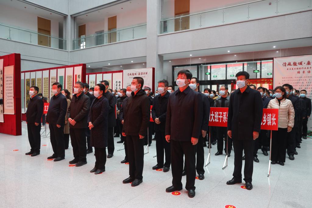 11月17日上午,忻州市紀(jì)委監(jiān)委主辦的“清風(fēng)雅頌·廉潔忻州”書法美術(shù)攝影作品展岢嵐縣專場在岢嵐縣總工會新樓一樓大廳舉行開展儀式??h四大班子領(lǐng)導(dǎo)和其他縣處級領(lǐng)導(dǎo)、各鄉(xiāng)鎮(zhèn)、縣直各單位主要負(fù)責(zé)同志共計150余人參加了開展儀式。