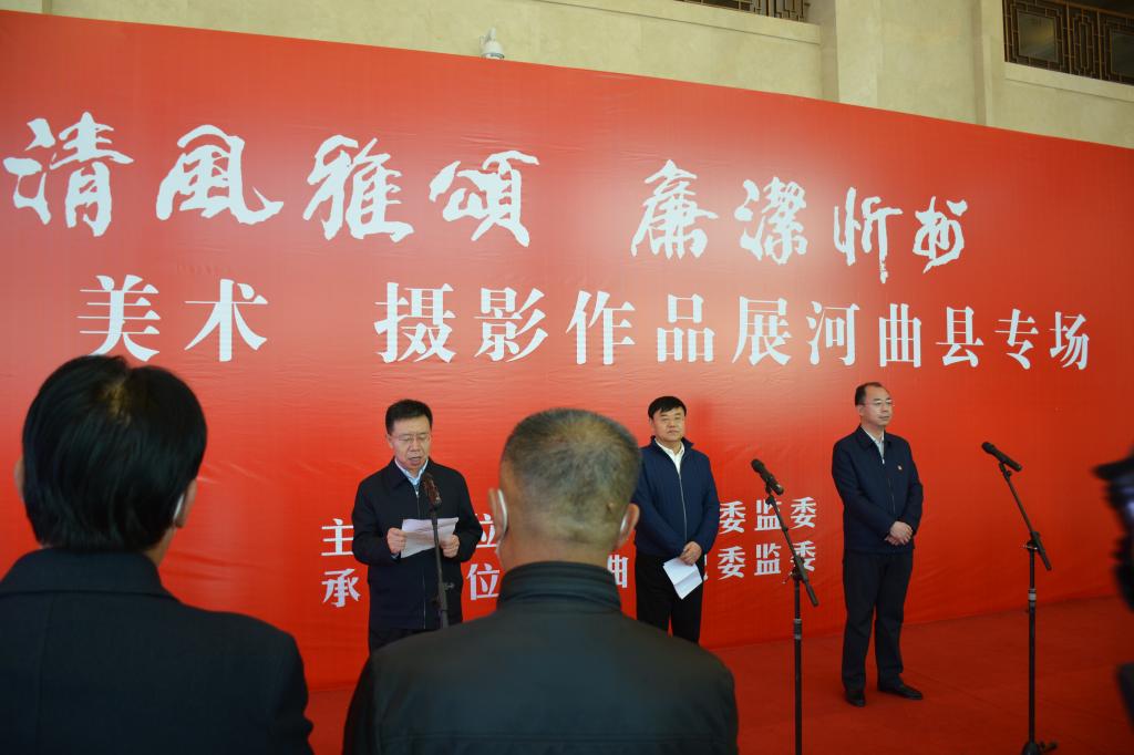翰墨丹青揚(yáng)正氣,清風(fēng)廉韻沁民心。11月10日,由忻州市紀(jì)委監(jiān)委主辦,河曲縣紀(jì)委監(jiān)委承辦的“清風(fēng)雅頌·廉潔忻州”書(shū)畫(huà)美術(shù)攝影展河曲縣專(zhuān)場(chǎng),在臨隩公園美術(shù)館開(kāi)展。市政協(xié)副主席、縣委書(shū)記邊東圣出席儀式并作重要講話(huà),縣委副書(shū)記、縣長(zhǎng)任鴻賓宣布“清風(fēng)雅頌·廉潔忻州”書(shū)法美術(shù)攝影展開(kāi)展,縣委常委、縣紀(jì)委書(shū)記、縣監(jiān)委主任張永明主持開(kāi)展儀式??h四大班子領(lǐng)導(dǎo)和其他縣處級(jí)領(lǐng)導(dǎo),全縣各鄉(xiāng)鎮(zhèn)、居民辦、黨群、政府、發(fā)改、農(nóng)口、政法、宣傳文衛(wèi)各口黨員干部及全體紀(jì)檢監(jiān)察干部共計(jì)180余人參加了開(kāi)展儀式。