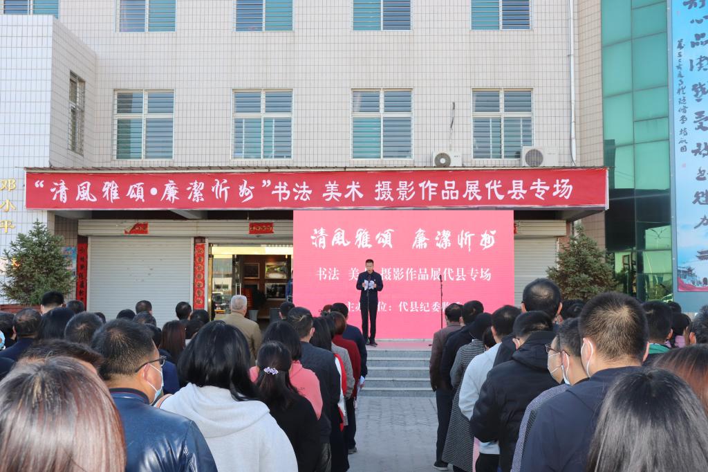 本次“清風雅頌·廉潔忻州”書法美術攝影作品展,在代縣專場展出為期三天,入展作品共260幅,其中包括忻州市部分國家級名家特邀作品47幅,省內(nèi)外助展作品23幅,我縣作品15幅。展出作品分為攝影圖片、書法藝術、繪畫和剪紙四個部分,作品主題鮮明,風格多樣,作者以書畫為載體,深入挖掘書畫藝術的廉潔內(nèi)涵,以畫承廉、畫賦廉意,結合傳統(tǒng)文化和現(xiàn)代手法,把理想信念、從政道德等反腐倡廉教育內(nèi)容,形象、生動、直觀地傳遞給廣大黨員干部群眾,使大家在欣賞中得到啟示,在愉悅中受到教育,讓代縣全體黨員干部在潛移默化中受到廉潔教育影響,同時營造“以廉為榮、全民崇廉”的黨風廉政建設新格局。