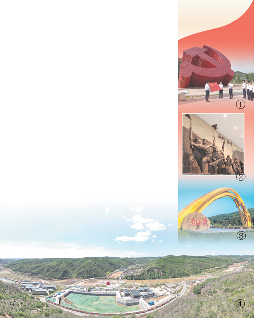 圖①:參觀學(xué)習(xí)團(tuán)隊(duì)在南泥灣黨徽廣場(chǎng)重溫入黨誓詞。祁小軍攝(人民視覺(jué))