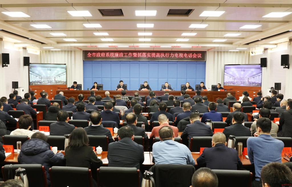 本報(bào)訊 (記者任逢春)2月22日,全市政府系統(tǒng)廉政工作暨抓落實(shí)提高執(zhí)行力會議召開,深入學(xué)習(xí)貫徹習(xí)近平總書記關(guān)于黨的自我革命的重要思想,全面貫徹黨中央國務(wù)院、省委省政府、省紀(jì)委和市委的系列會議安排,對縱深推進(jìn)政府系統(tǒng)黨風(fēng)廉政建設(shè)和反腐敗斗爭工作進(jìn)行安排部署,號召全市政府系統(tǒng)振奮精神、擔(dān)當(dāng)作為,全面提升重實(shí)干、強(qiáng)執(zhí)行、抓落實(shí)的實(shí)踐成效,不斷開創(chuàng)全市高質(zhì)量發(fā)展、全方位轉(zhuǎn)型和現(xiàn)代化建設(shè)新局面。市委副書記、市長李建國出席會議并講話。市委常委、常務(wù)副市長趙新年主持會議。市委常委、市紀(jì)委書記、市監(jiān)委代主任王建江,副市長史紅波、賈玲香、王建峰、李碩,市政府秘書長張艮生出席。