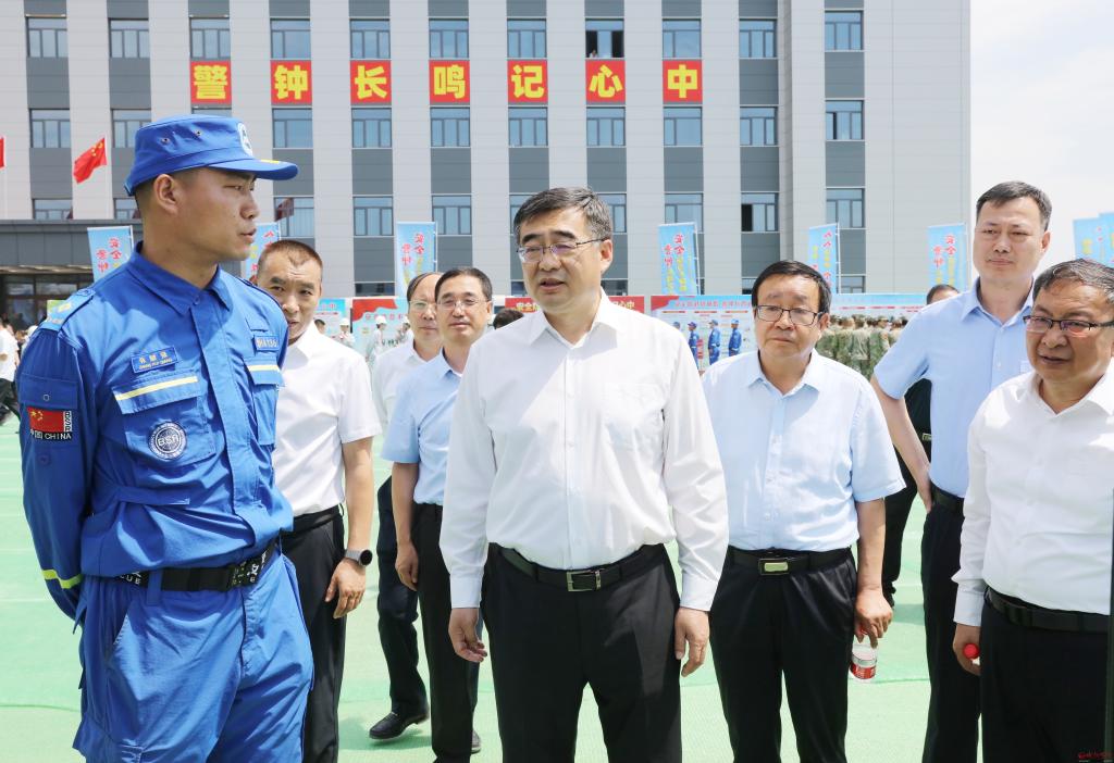 檢查消防救援大隊、礦山救援隊和藍天救援隊的應急裝備器材。范濤 攝