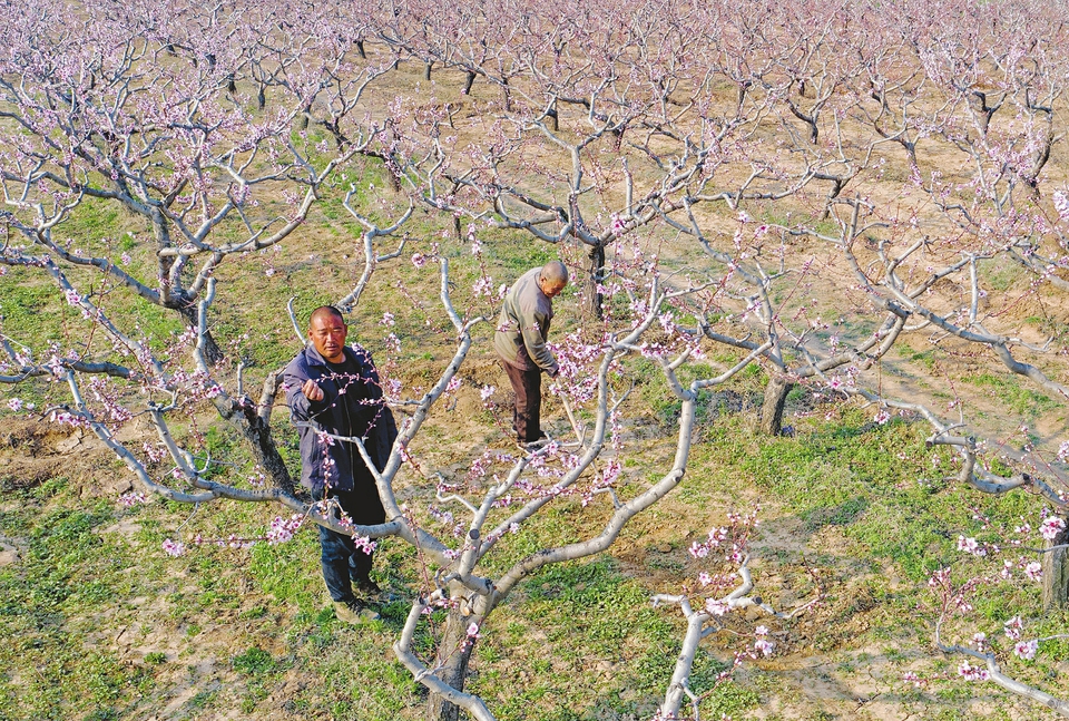 3月30日,在臨汾市襄汾縣大鄧鄉(xiāng)上西梁村,果農(nóng)在桃園開展春管作業(yè)。日前,上西梁村上百畝桃樹進(jìn)入盛花期,當(dāng)?shù)剞r(nóng)民搶抓農(nóng)時(shí)對(duì)桃園開展追肥、灌溉、疏花等系列農(nóng)事活動(dòng),確保果樹正常生長、果實(shí)優(yōu)質(zhì)高產(chǎn)。李現(xiàn)俊攝